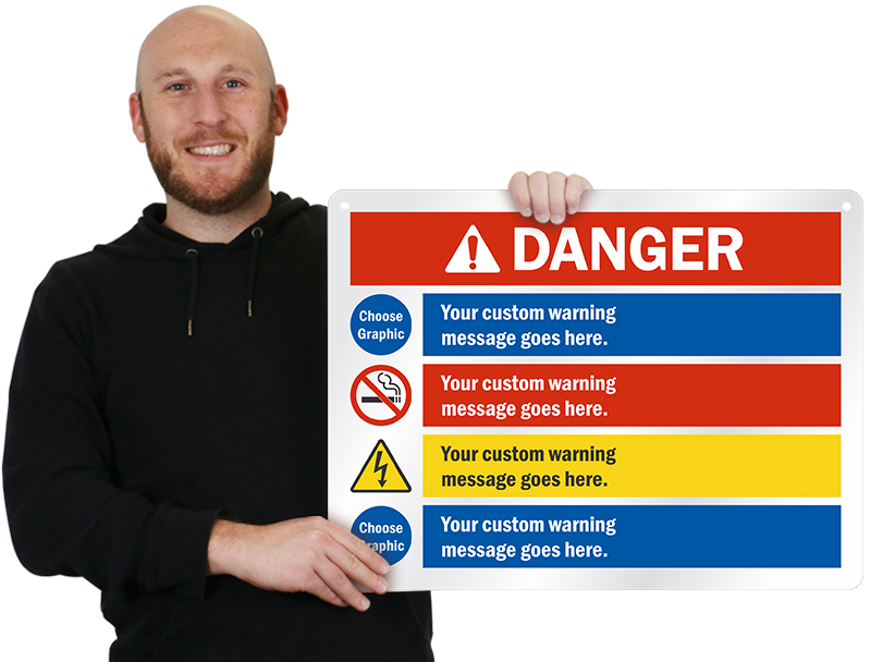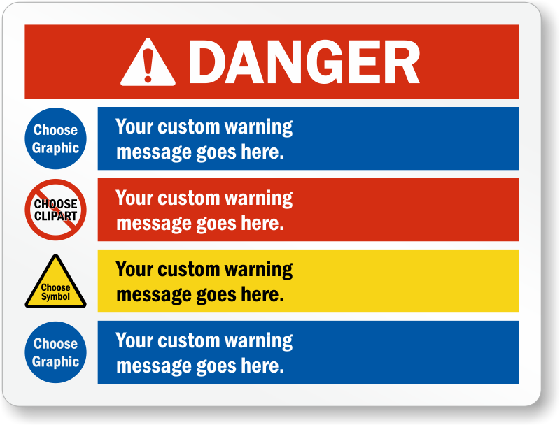 Custom Multiple Cliparts Sign: Choose Custom Header, Select Cliparts And Add Warning Message Learn More...