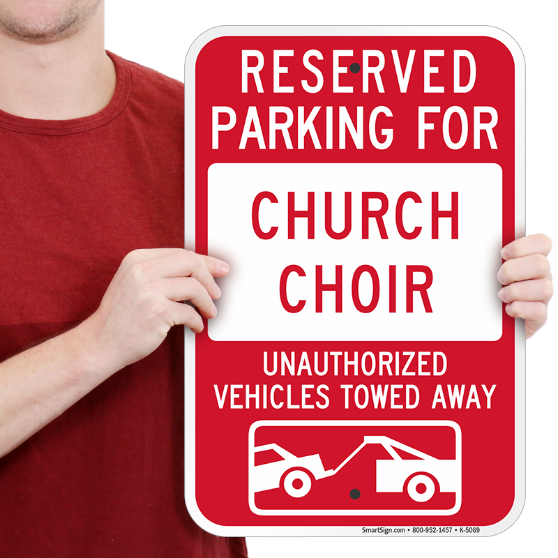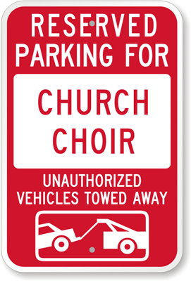 Tow Away Sign: Reserved Parking For Church Choir - Unauthorized Vehicles Towed Away K-5069 Learn More...