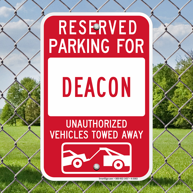 Tow Away Sign: Reserved Parking For Deacon : Unauthorized Vehicles Towed Away K-5083 Learn More...