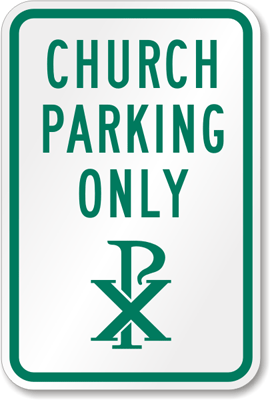 Church Parking Sign: Church Parking Only (Chi Rho Symbol) Learn More...