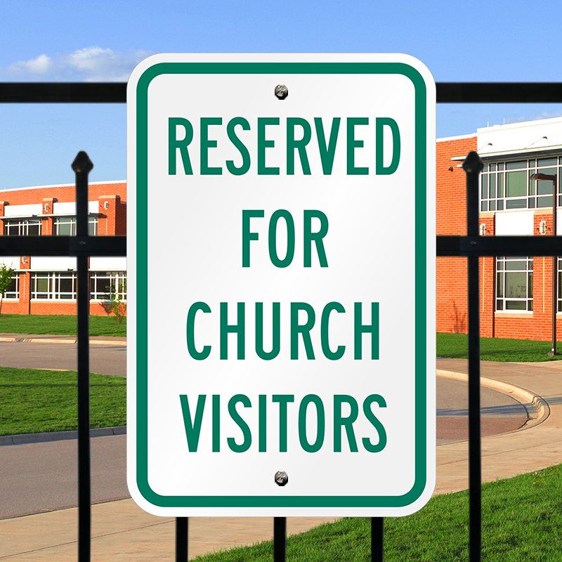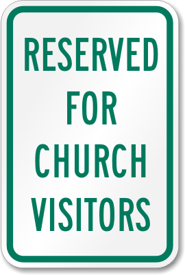 Reserved Parking Sign: Reserved for Church Visitors Learn More...