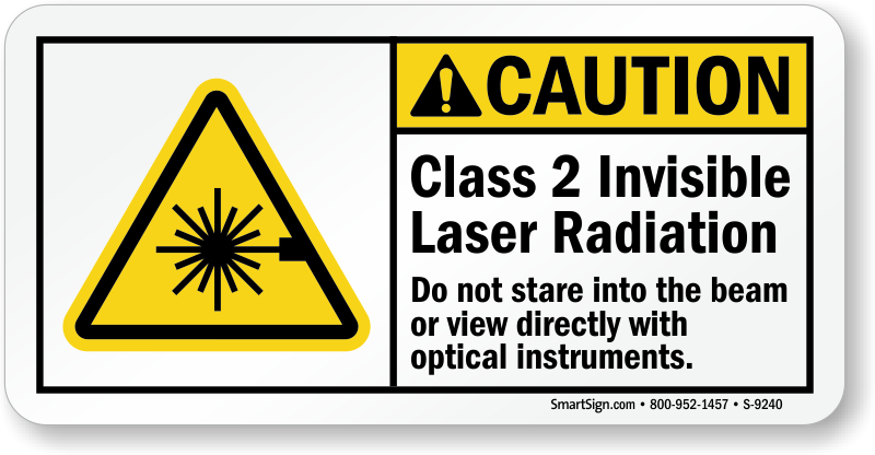 ANSI Caution Sign: Class 2 Invisible Laser Radiation Do Not Stare Into The Beam Or View Directly With Optical Instruments. S-9240