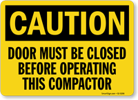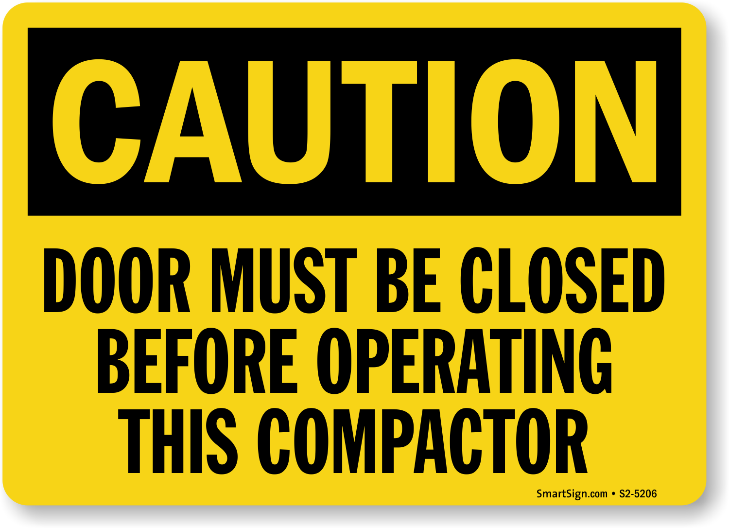 OSHA Caution Sign: Doors Must Be Closed Before Operating This Compactor S2-5206