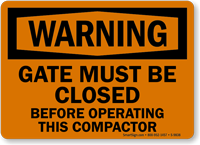 Use this Gate Must Be Closed Sign for your compactors and ensure safety for all. Clearly mark hazardous machines with OSHA Warning sign and send a safety warning to your workers.