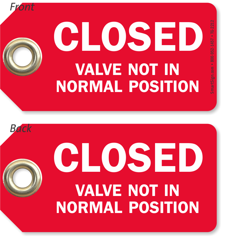 At-valve instructions are very helpful and ensure safety. This horizontally-aligned red tag relays an important instruction on both the sides.