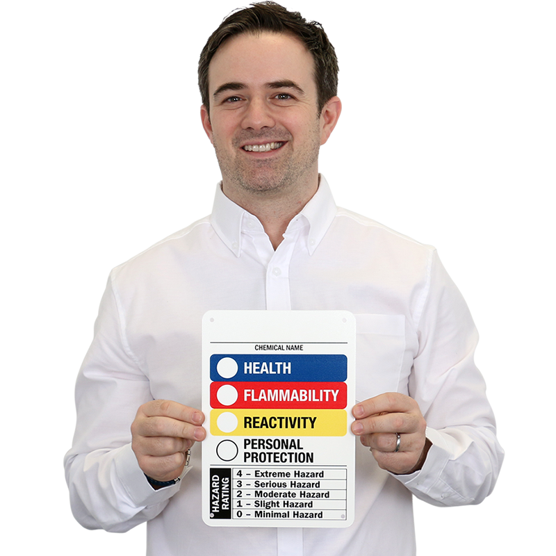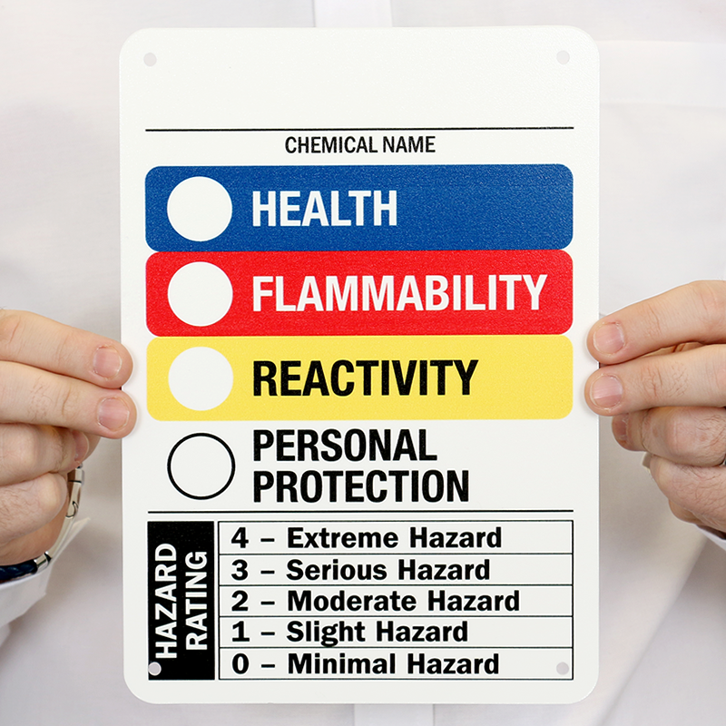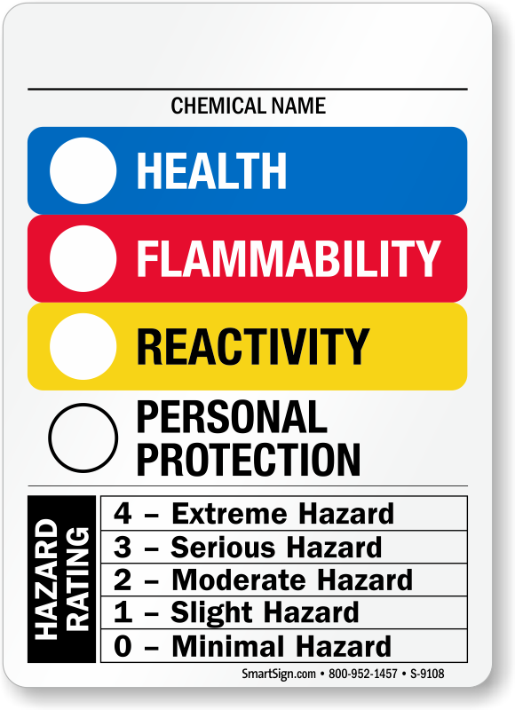 When workers use different chemicals, have this color bar sign handy to inform them of the particular hazard levels.