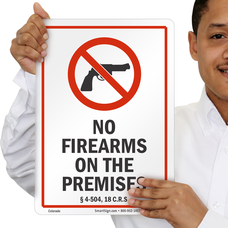 In compliance with Colorado code section § 4-504, 18 C.R.S., this Gun Control Law Sign lets you inform people that firearms are prohibited on your premises.