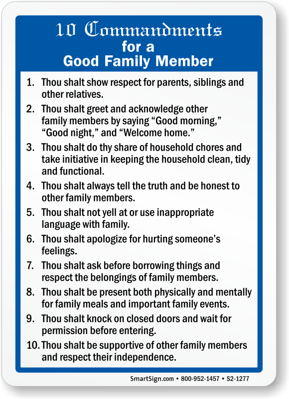 10 Commandments on this sign helps remind family members to be good and supportive to each other.