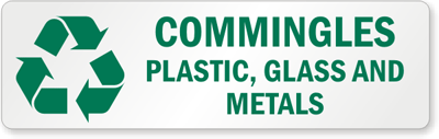 Use this label to notify people that they can dispose used plastic, glass and metal together in a recycle container.