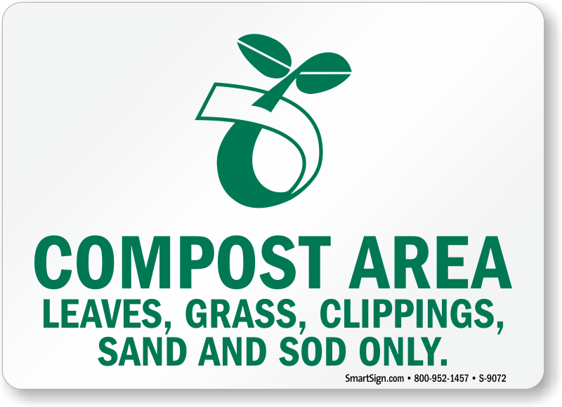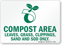 Mixing certain materials can slow decomposition--use this compost area sign to indicate it is intended for leaves, grass, clippings, sand and sod only.