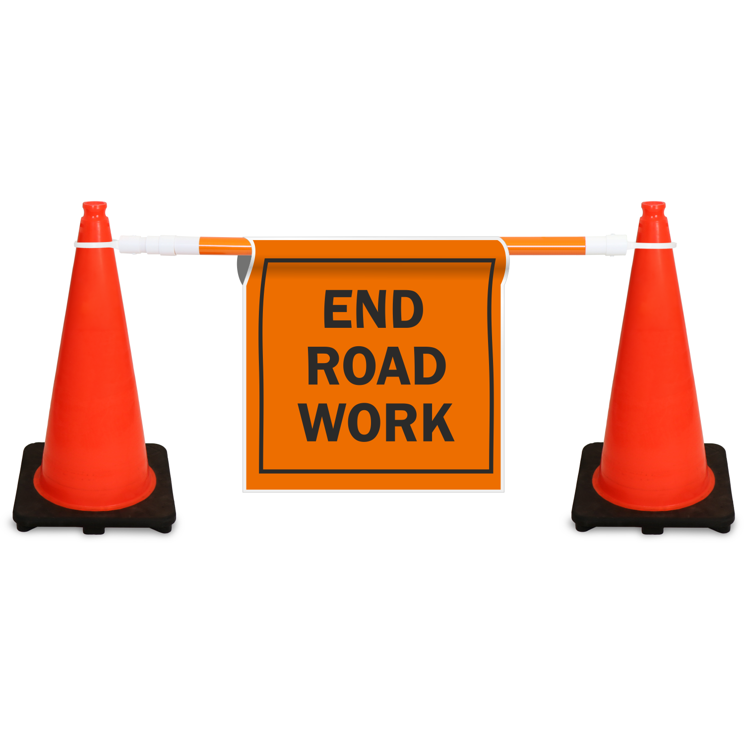 Cone Bar Barricade Signs: End Road Work Learn More...