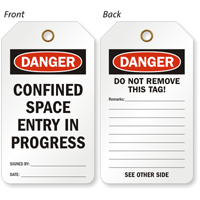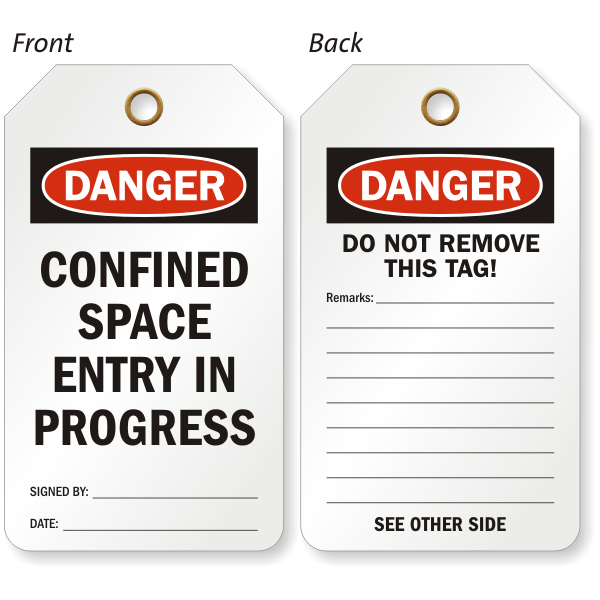 Confined spaces need handy on-spot tags. This OSHA Confined Space Danger Tag is a great way to send a message across and build awareness.