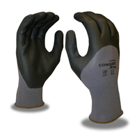 Conquest Xtra™ glove features a 15-gauge, gray, nylon/spandex shell and black, micro-foam nitrile/polyurethane (PU) ¾-palm coating.
