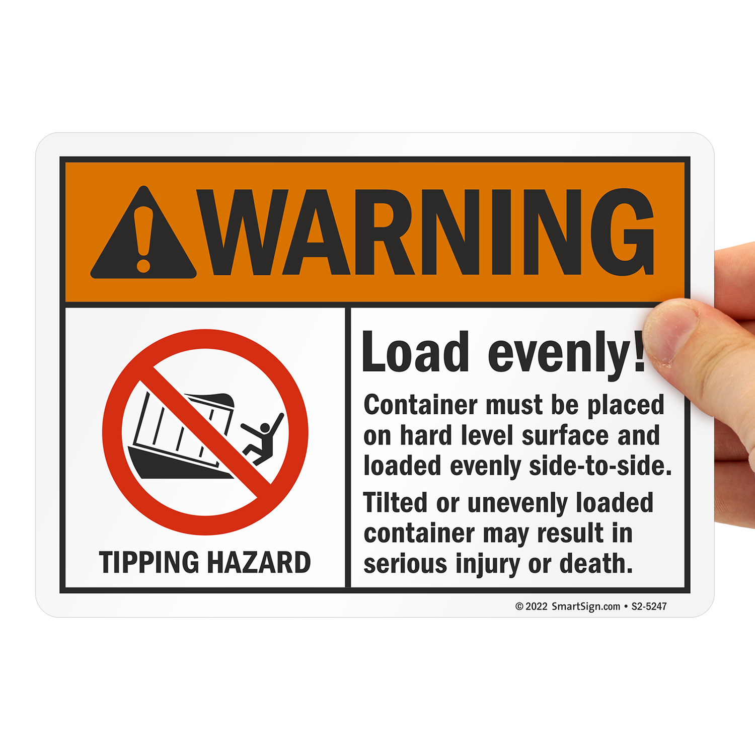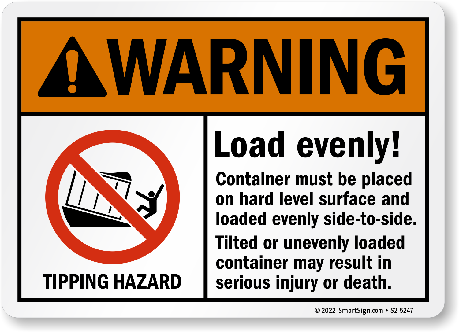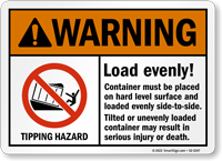 ANSI Warning Sign: Container Be Placed On Hard Level Surface And Loaded Evenly S2-5247