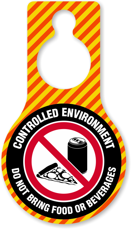 Pear Shaped Plastic Door Hang Tag: Controlled Environment Do Not Bring Food Or Beverages (with Graphic) TG-1422
