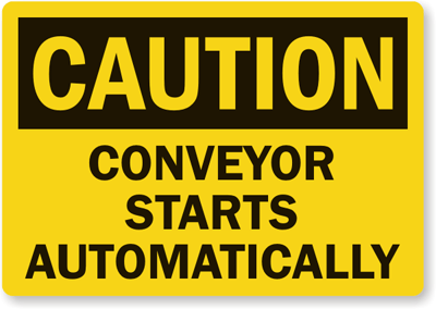 Moving conveyors are a hidden danger. These bold labels help prevent accidents.