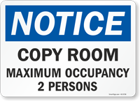 Notify employees about the maximum occupancy for the copy room with our durable sign designed specifically for offices.