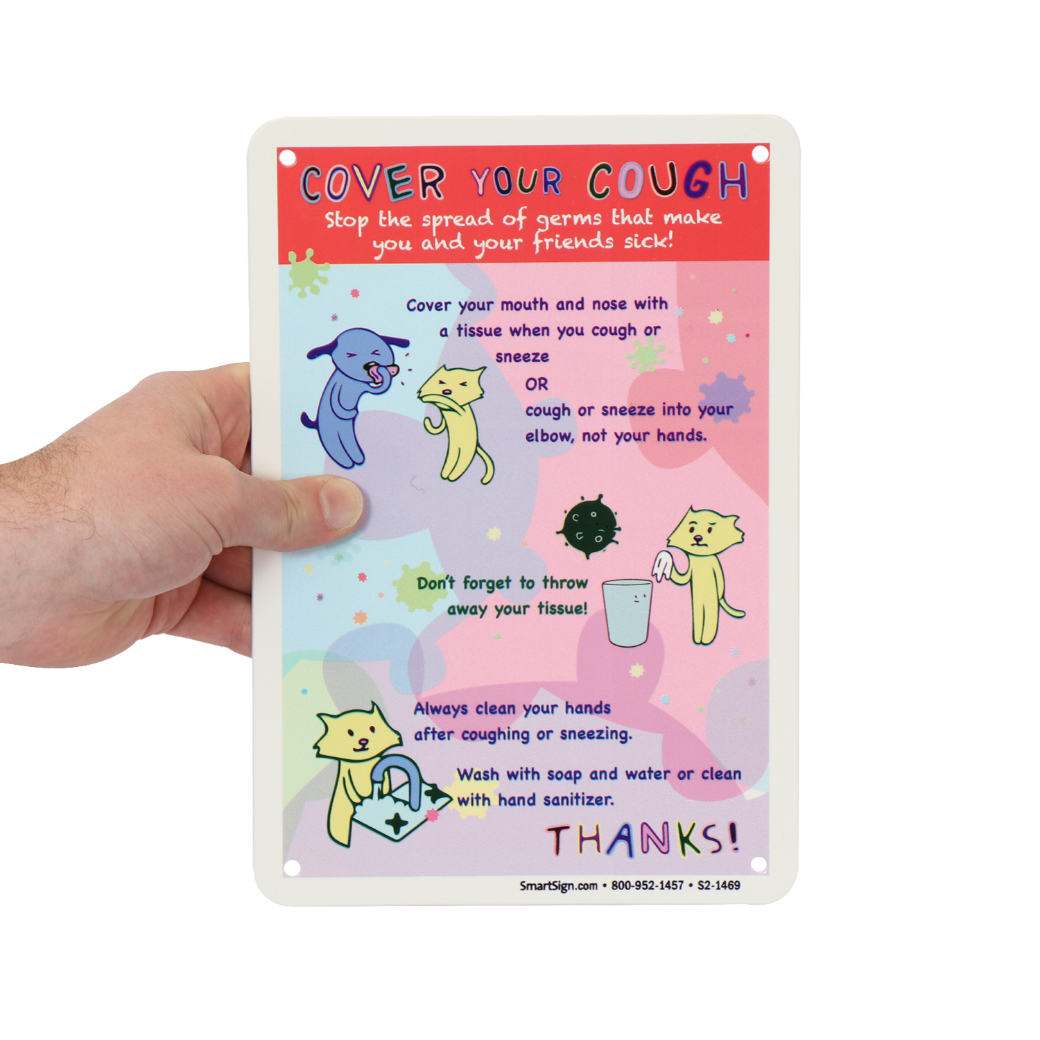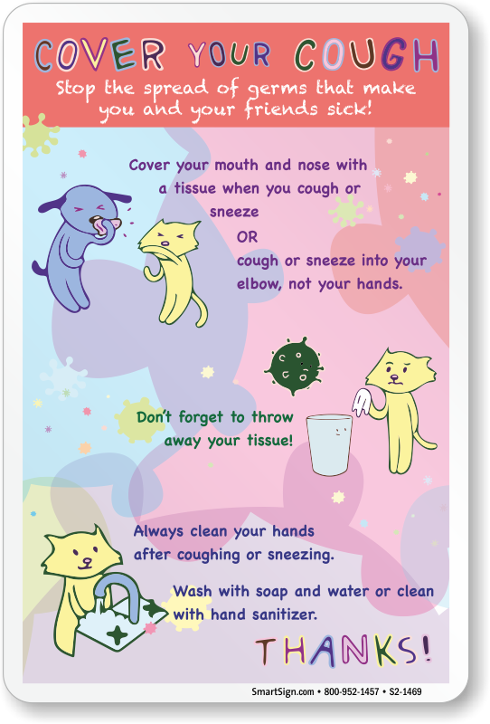 Elementary School Kids Sign: Cover Your Cough, Stop The Spread Of Germs with Graphic S2-1469