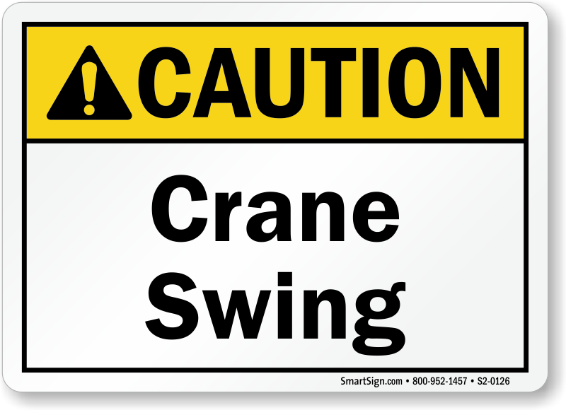 Mark swing area of crane with this ANSI Caution Sign so that no worker is within the swing radius and comes in contact with the crane.