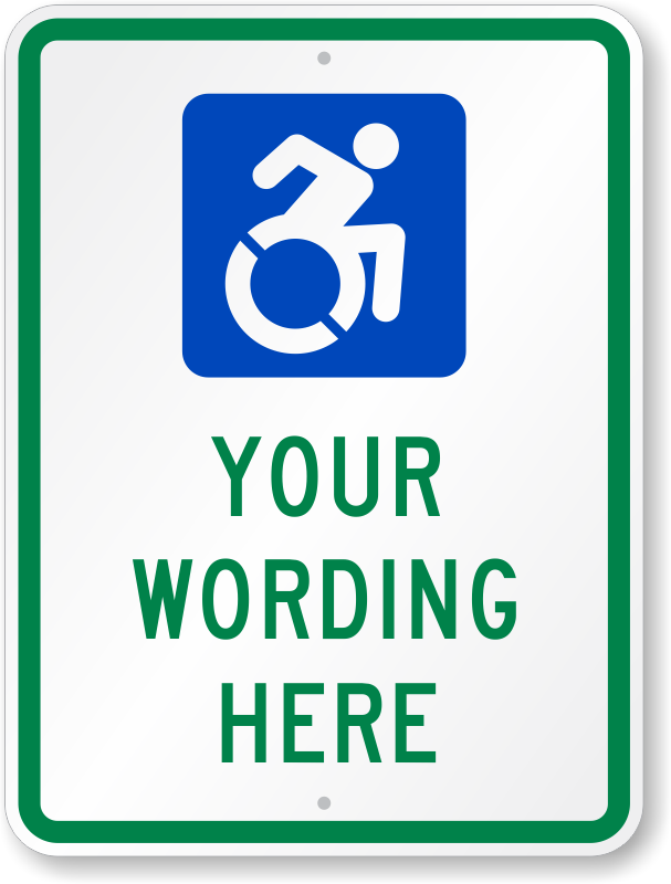 Personalize by adding a unique text. Updated, redesigned ISA (International Symbol of Access) makes your point clear and easy to understand.