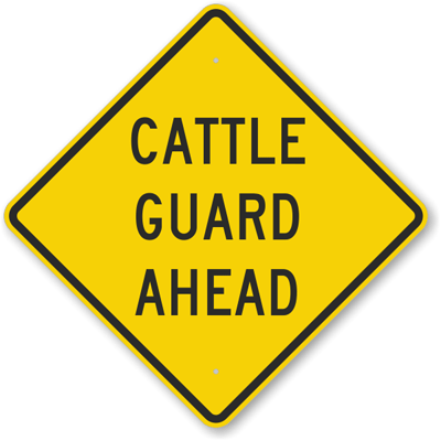 The sizes below are measured using the “sign as square” method. If you measured the Cattle Guard Ahead sign, instead, from the top to the bottom, this tip-to-tip dimension would be 40% larger.