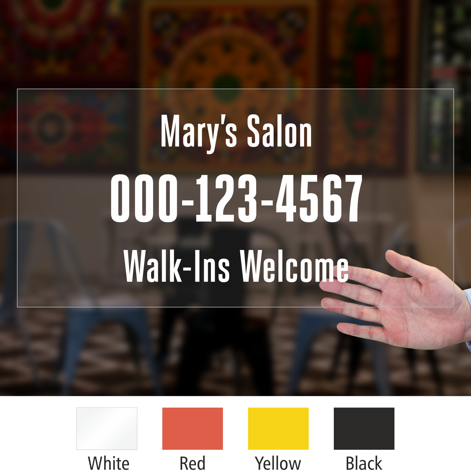 Don't want to wrap your entire entrance door but still want to display a welcome message? Use this elegant Custom Die Cut Label to mention your facility's name, phone number, and an inviting message for customers.