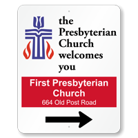 Need a personalized directional sign to mark the entrance of your Presbyterian Church? Create a customized Church Entrance Sign by adding your address to our custom template.