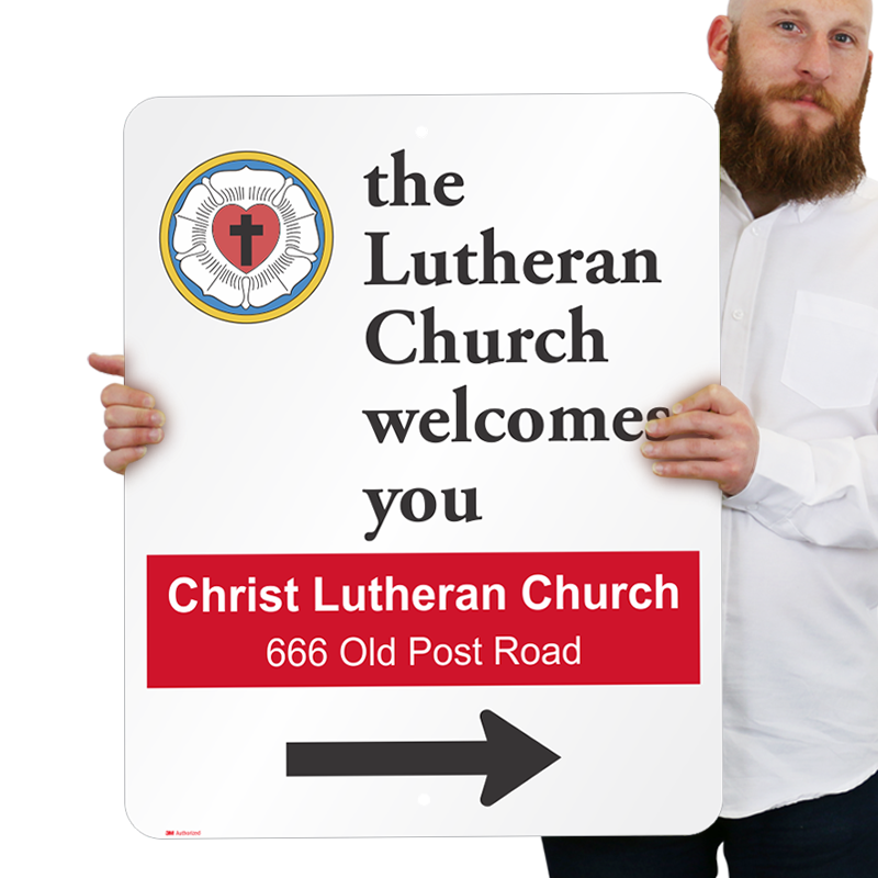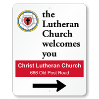 Direct visitors toward the entrance of your Lutheran Church with a personalized directional sign. Create a customized sign by adding your church address to this template.