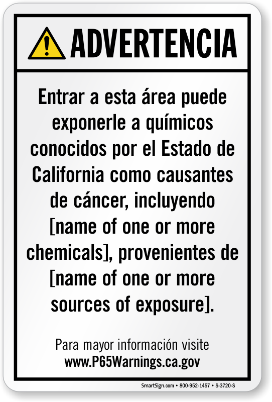• To meet regulations, we may have to increase the size of your sign to feature your required chemical names and sources of exposure.