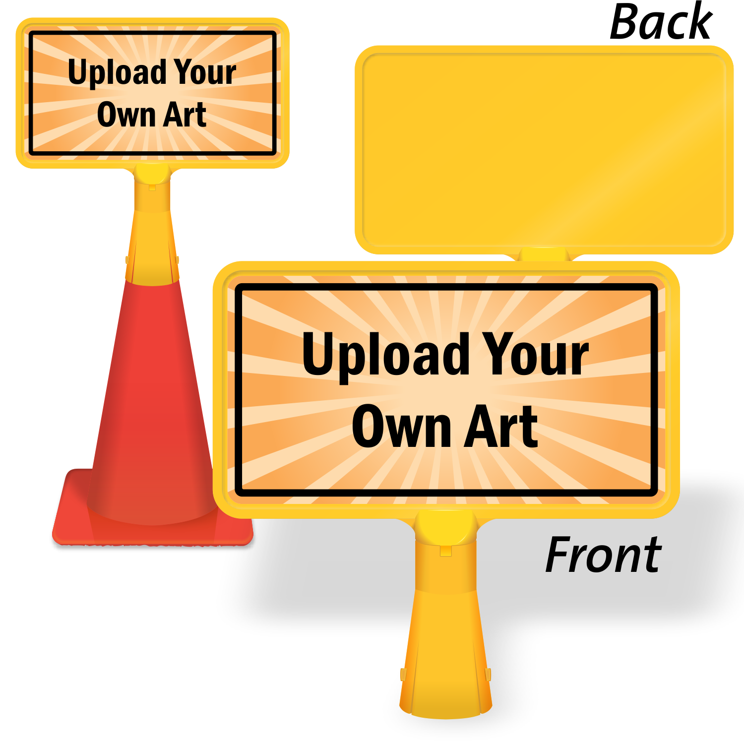 Customize this Caution Sign especially designed for a traffic cone top in under a minute! Add your unique instructions to this template, choose font, 1-sided or 2-sided cone sign and you're done.