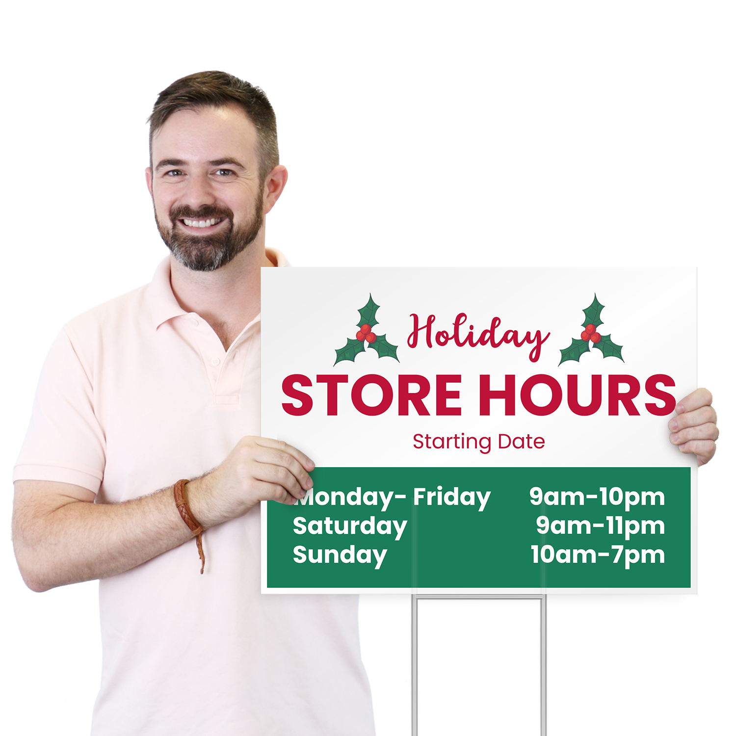 Custom Event Yard Sign: Holiday Store Hours, Starting Date - Add Your Date And Timings K3-3081-H