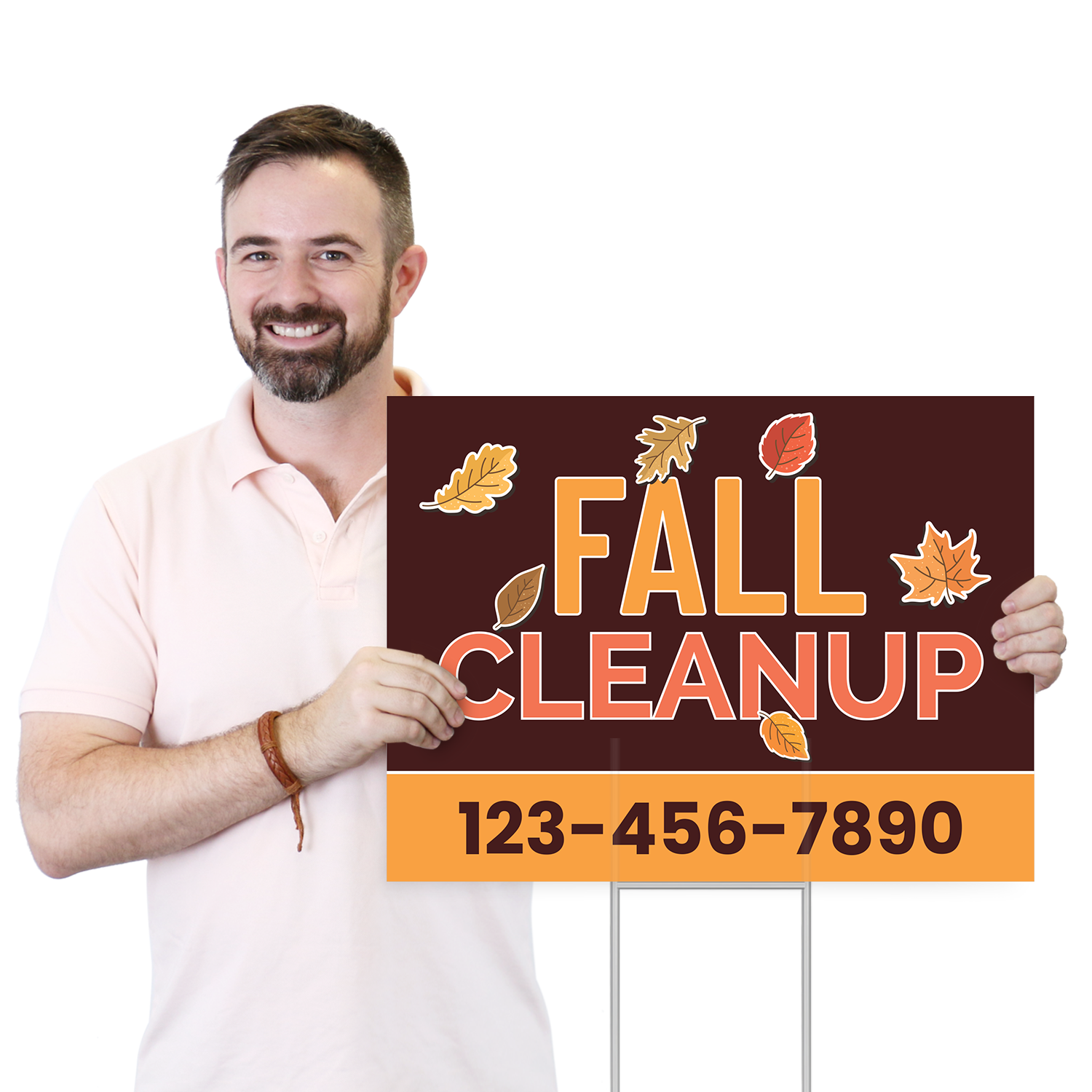 Custom Contractor Business Yard Sign: Fall Cleanup-Add Your Mobile Number K3-3132-H