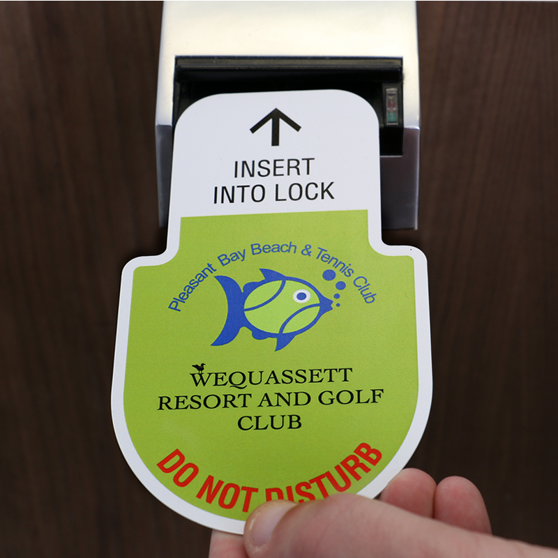 Customizable electronic door lock inserts are a great way to get your branding right! Upload your logo, hotel name, and more text/graphics to be printed on the mushroom shaped door insert. Customization is free!
