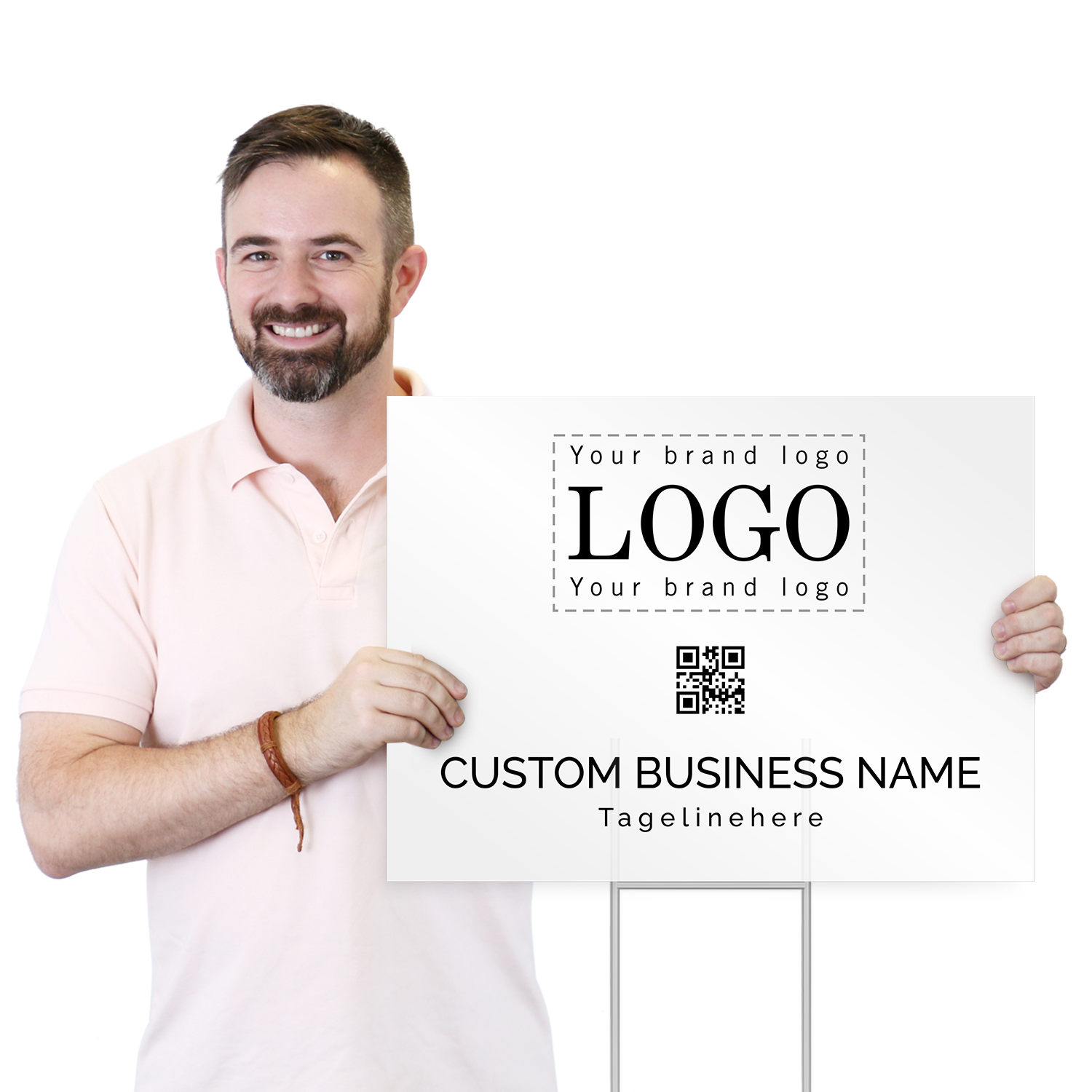 Custom Contractor Business Yard Sign: Qr Code-Upload Your Logo, Add Your Business Name & Tag Line Here K3-3137-H
