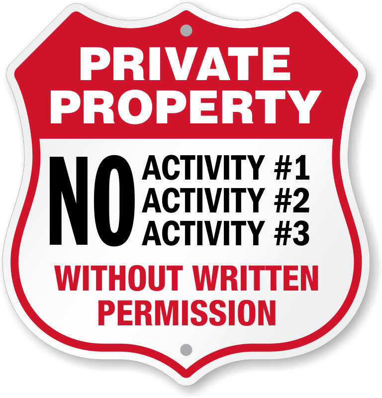 Custom Private Property Shield Sign: No - Add Activity. Without Written Permission K2-3372 Learn More...