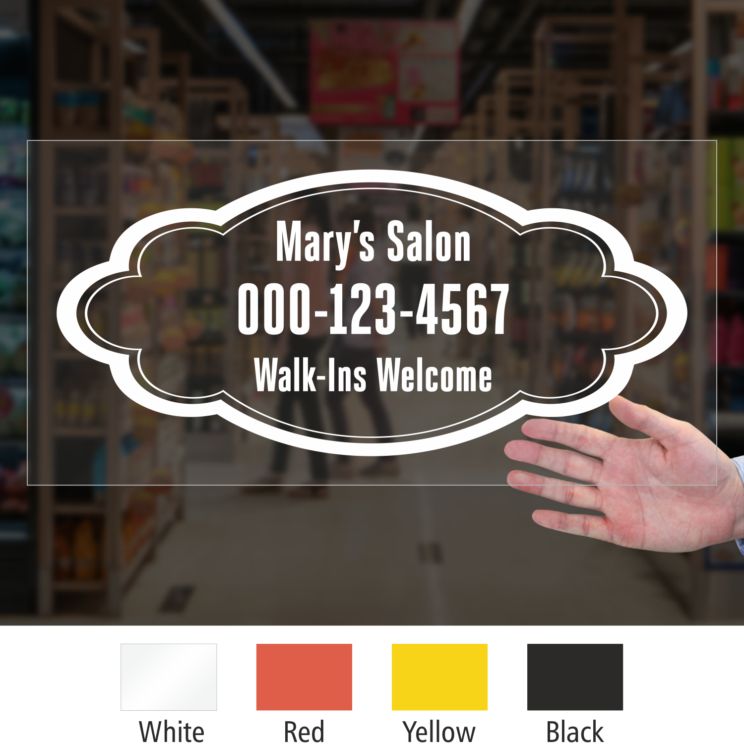 Give a designer touch to your facility's décor. Welcome customers with this elegant Custom Designer Die Cut label. You can add your facility's name, phone number, etc.
