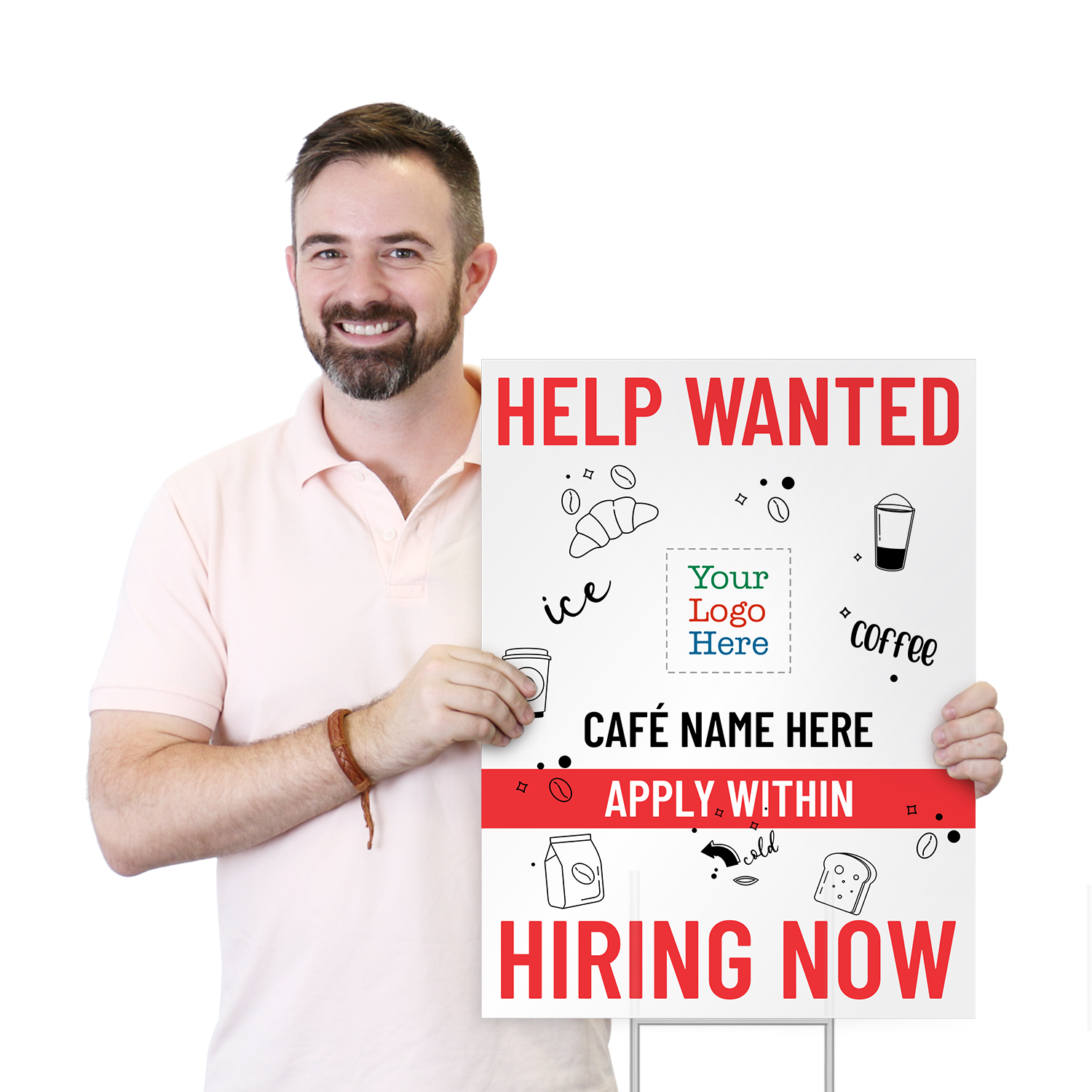 Custom Yard Help Wanted Sign: Hiring Now Apply Within-Add Your Cafe Name & Logo K3-3146-V