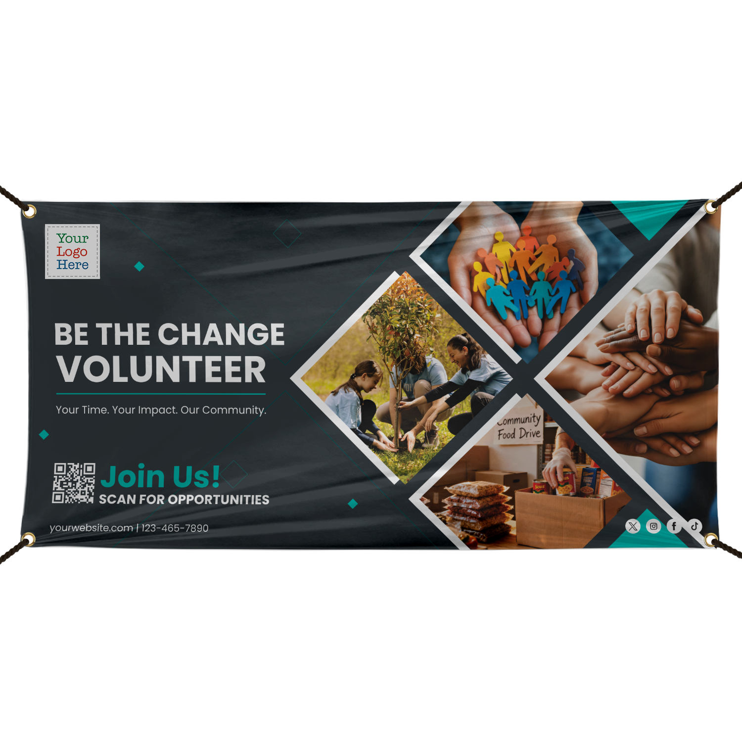 Custom Vinyl Banner: Non-Profit Volunteer Charity - Add Your Text and Logo B-3110 Learn More...