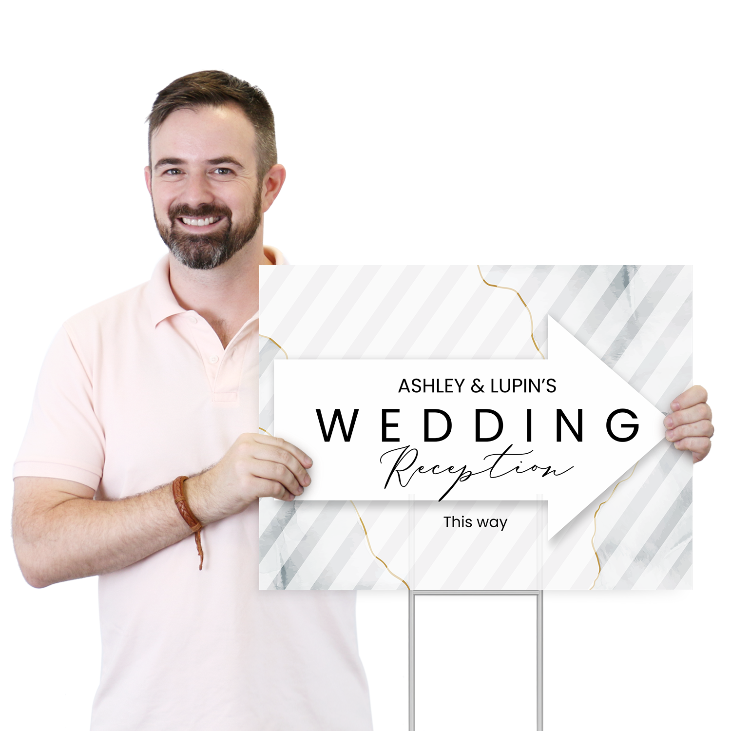 Custom Event Yard Sign: Wedding Reception, This Way - Add Your Names (With Arrow) K3-3094-H