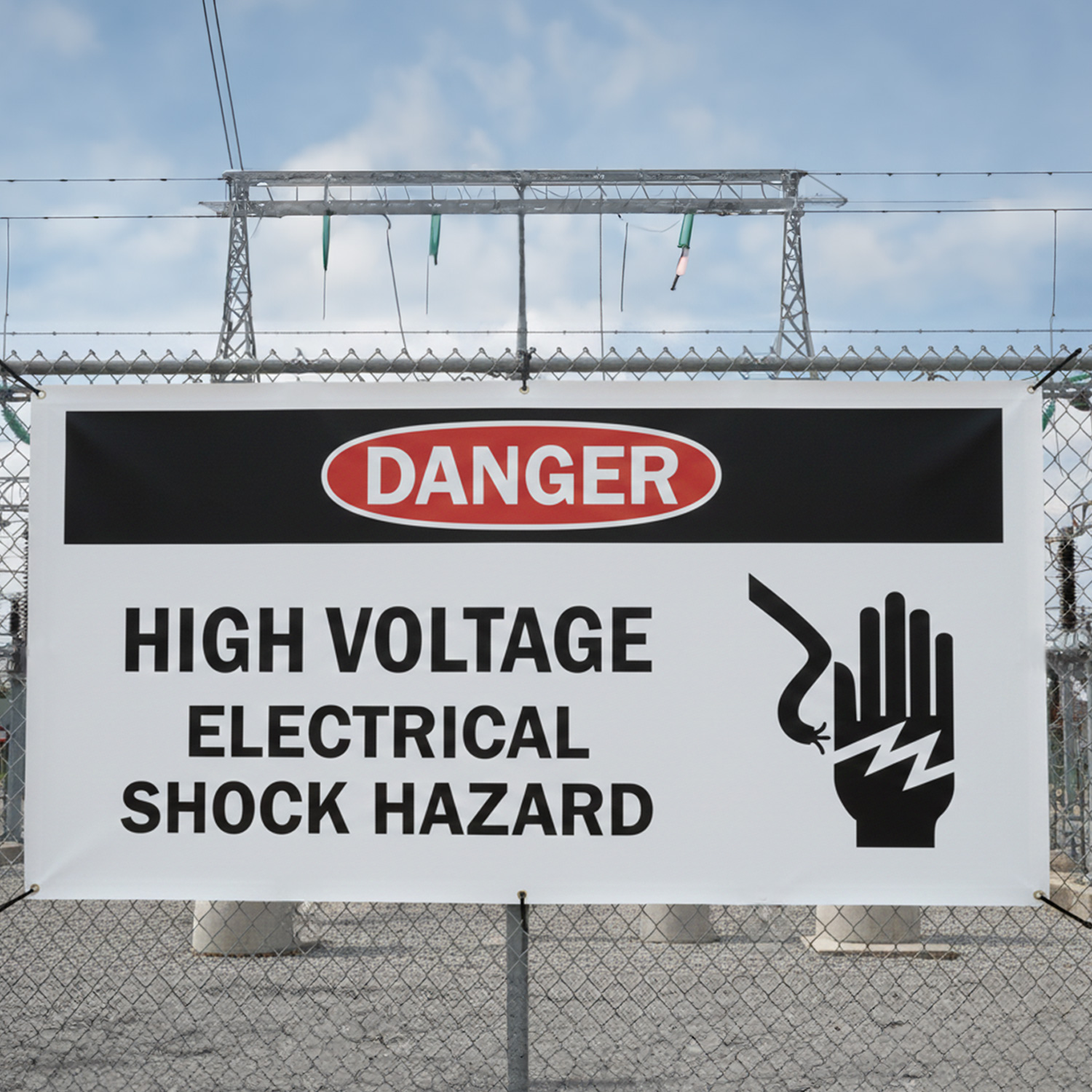 Custom Vinyl Banner: Danger Add Your Electrical Warning Text Here (With Symbol) B-3067