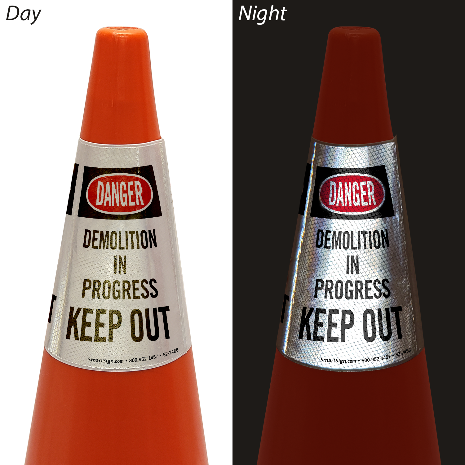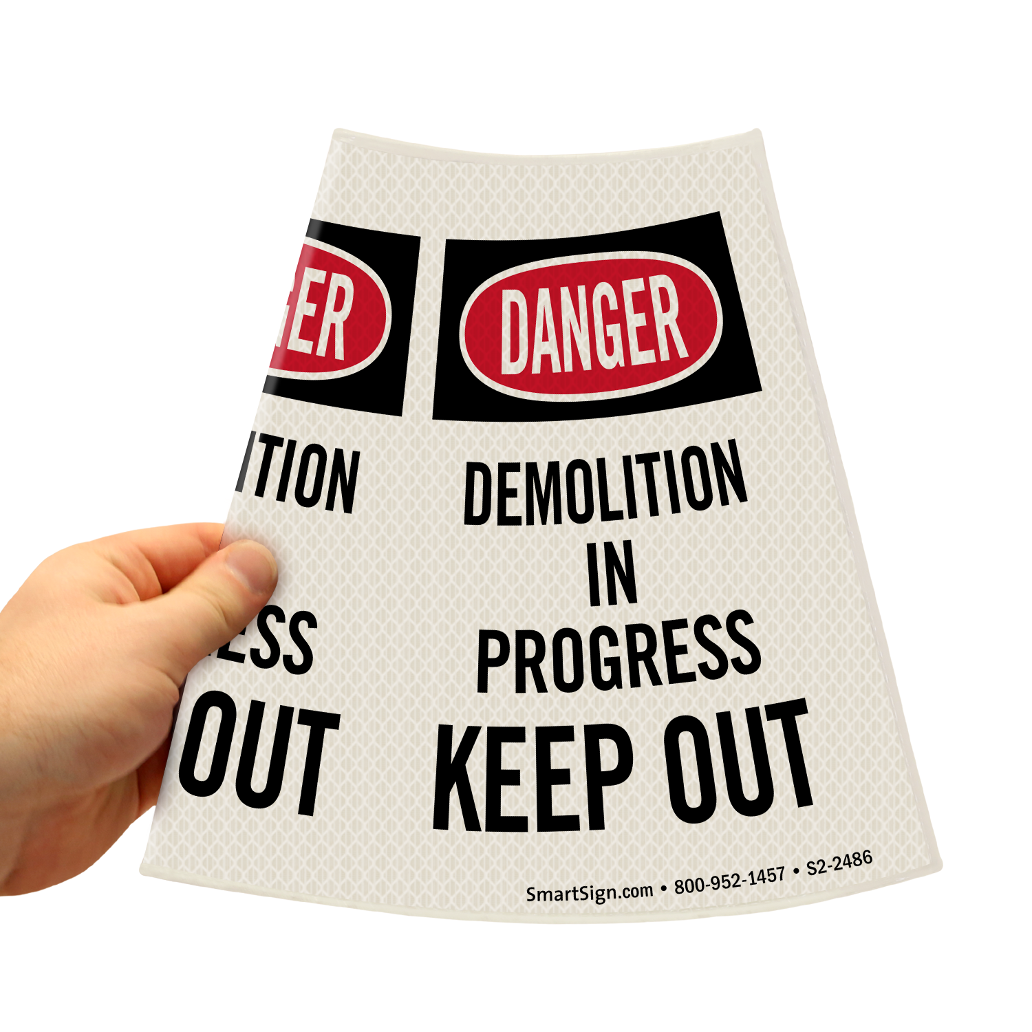 Double the impact of your traffic cones by using our Message Cone Sleeve, visible from three directions. Cone sleeves easily slip over the top of any standard (18" or 28" high) cone and can be reused whenever required.