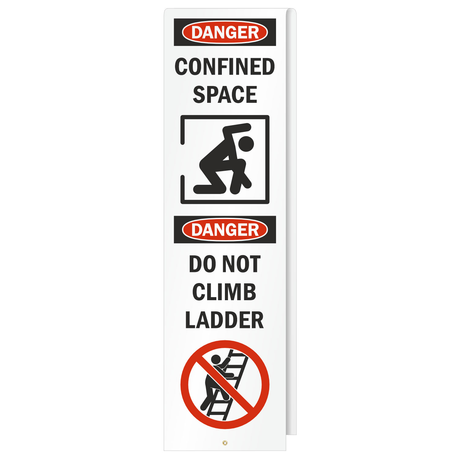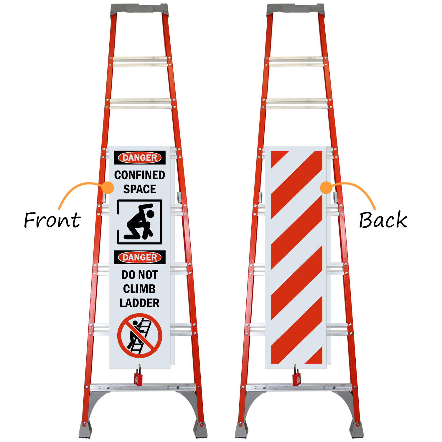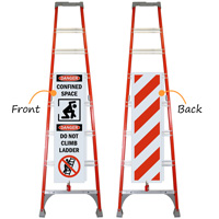 Mark and cover access ladders with a shield wrap to restrict entry to elevated confined spaces. As the name suggests, the shield wrap, covers or wraps much of the ladder on both sides, restricting ascent.