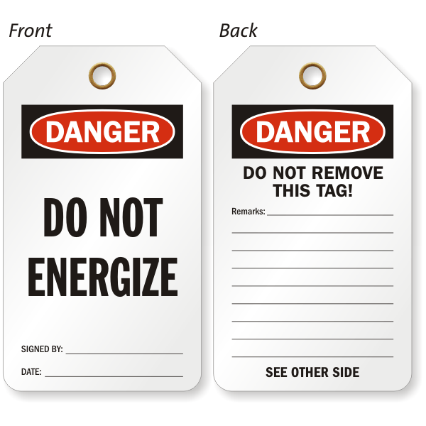 A Two Sided OSHA Danger Safety Tag ensures no one accidentally energizes a machine when you are working on it in power-off mode.