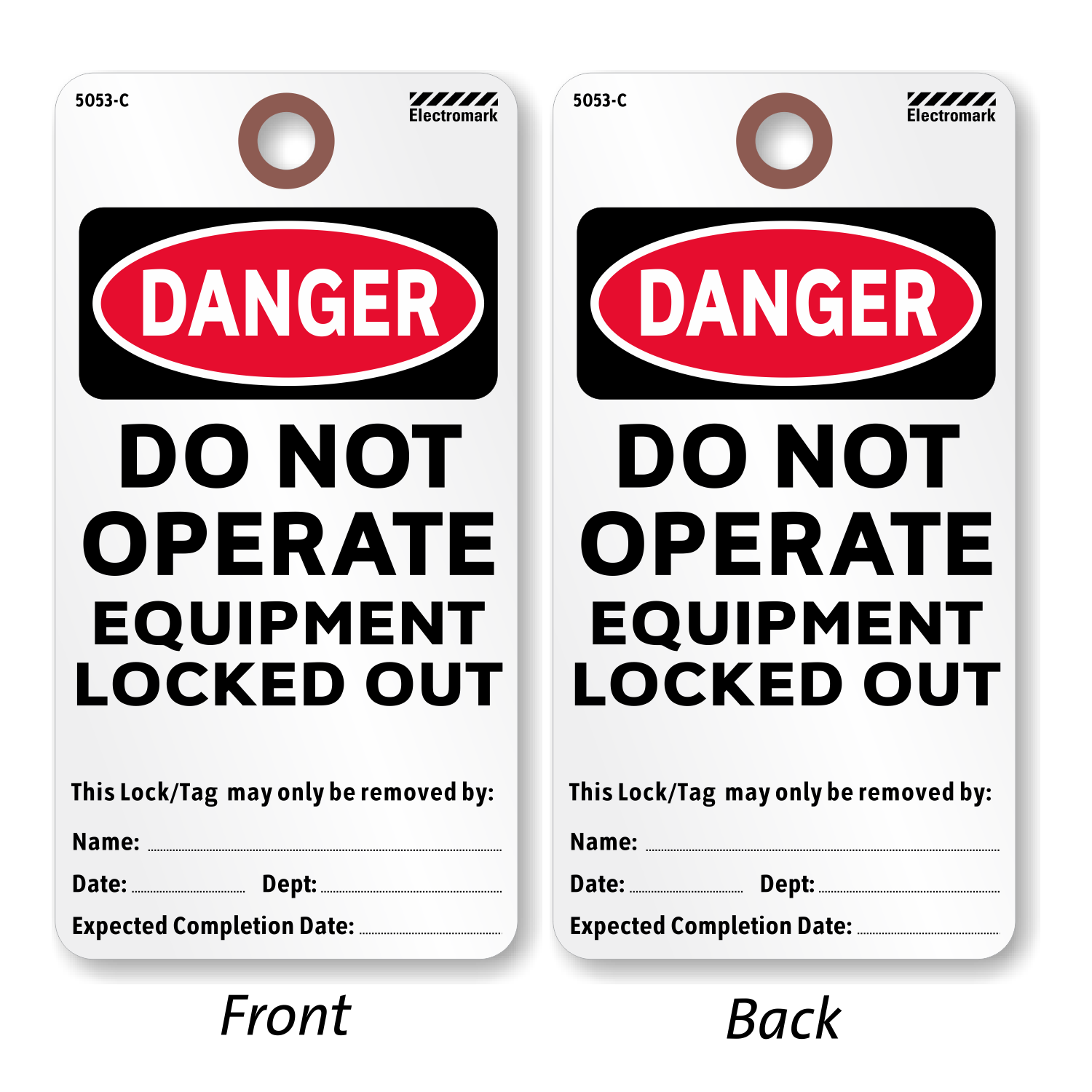 2-Sided OSHA Danger Safety Tag: Do Not Operate Equipment Locked Out Tag With Fiber Patch T123-C