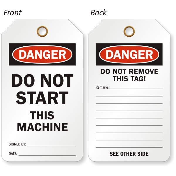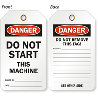 2-Sided OSHA Danger Safety Tag: Do Not Start This Machine Do Not Remove This Tag TG-0537