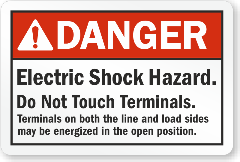 ANSI Danger Sign: Electric Shock Hazard. Do Not Touch Terminals.