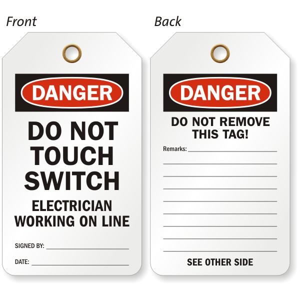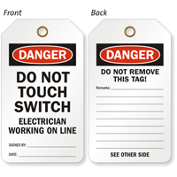 Call attention to your message with this bold 2-Sided OSHA Danger Safety Tag and ensure electrician's safety in your facility.