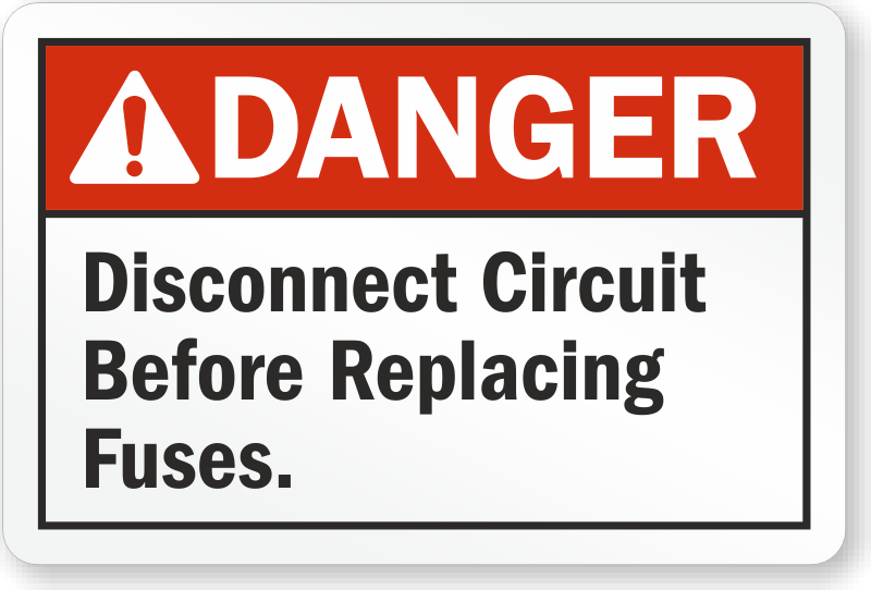 ANSI Danger Sign: Fuse Holder Sign - Disconnect Circuit Before Replacing Fuses S2-2976