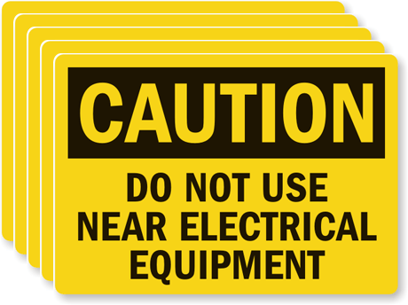 3.5in. x 5in. Laminated Vinyl Labels: OSHA Caution - Do Not Use Near Electrical Equipment L-0114-VS