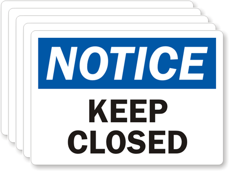 3.5in. x 5in. Laminated Vinyl Labels: OSHA Notice Keep Closed L-0132-VS